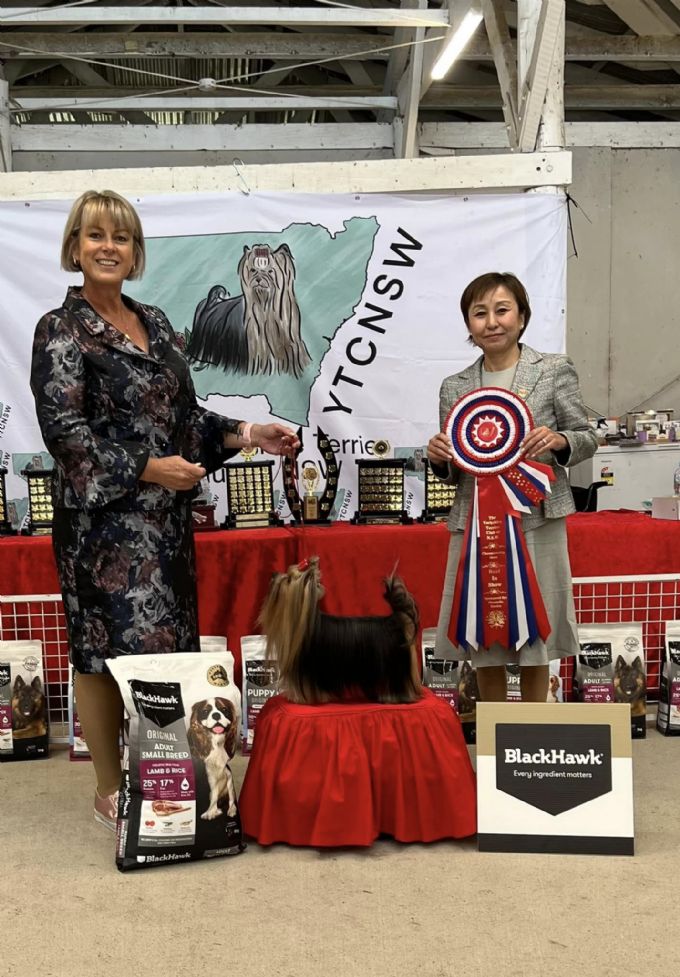 Dec 2022 (October) The Yorkshire Terrier Club of NSW Best In Specialty Show BISS Ch Smidgit Get Drunk N Go Wild, Owner Suzanne Knowles, Specialty Show Judge Ms Jeanie Montford (NSW) Breeder : Alanna & Wayne Burton
