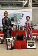 Pictured with Owner/Breeder/Handler Linda Shaw and Specialty Show Judge Mr G Bodegard (Sweden)